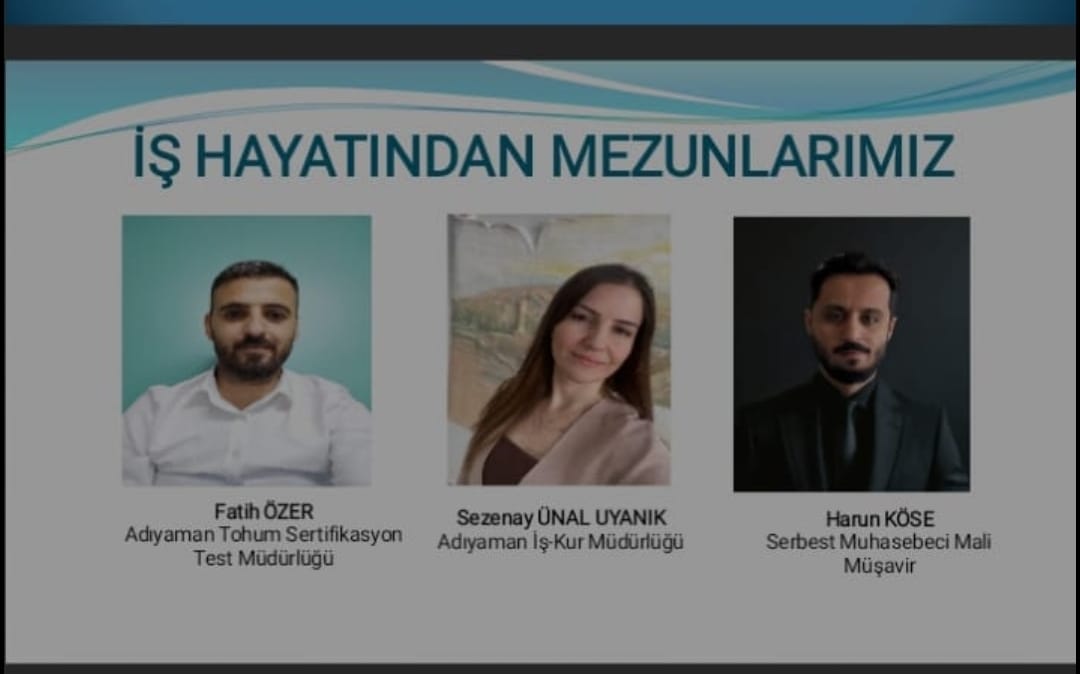 Etkinliğin moderatörlüğünü ADYÜ Mezunlar Koordinatörü Doç. Dr. Gülşen Kırpık yaptı. Söyleşide, farklı meslek alanlarında başarı elde eden Adıyaman Üniversitesi mezunları, kariyer yolculuklarını ve deneyimlerini öğrencilerle paylaştı.